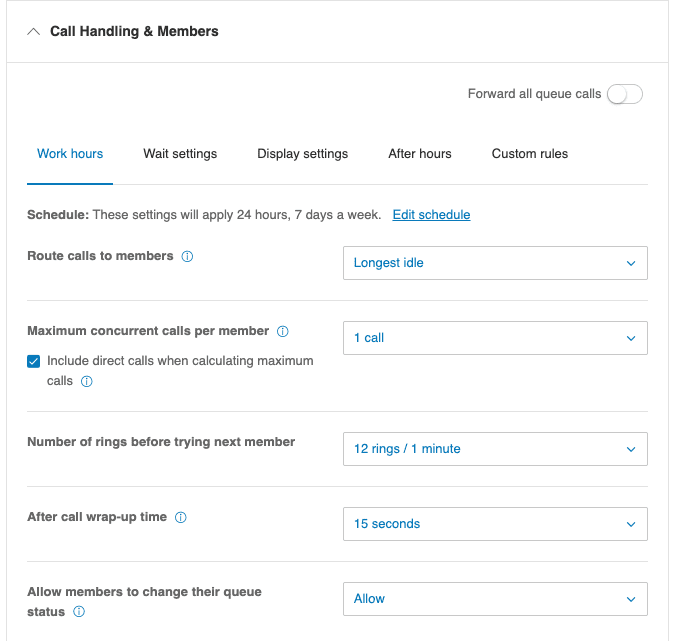 Call queue call handling is a set of configurations that determine how incoming calls to a call queue are routed and managed. These configurations can be tailored for different scenarios to ensure efficient call distribution and a consistent caller experience.