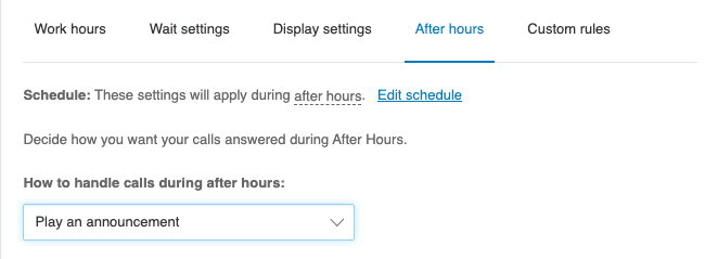 - After Hours rule – Applies when the business is closed (if business hours are not set to 24/7).