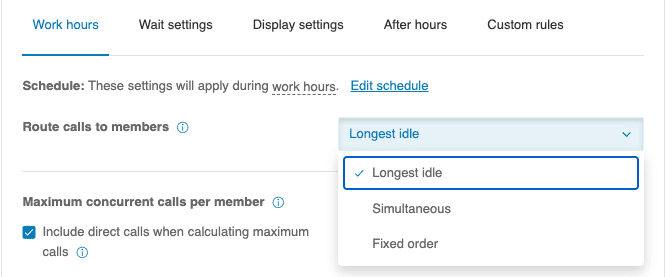 Fixed Order – Calls are routed to members one at a time in a predefined sequence. If the first member doesn’t answer within the set timeout, the system tries the next member in the list, and so on. |
